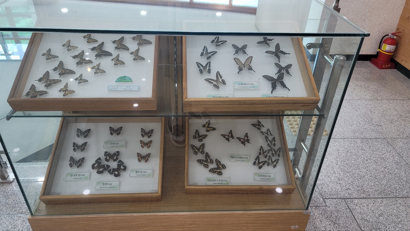 로비에서 맞이하는 다양한 나비와 곤충들의 향연~ 그날은 멸종위기종 관련 특별전시도 했답니다~